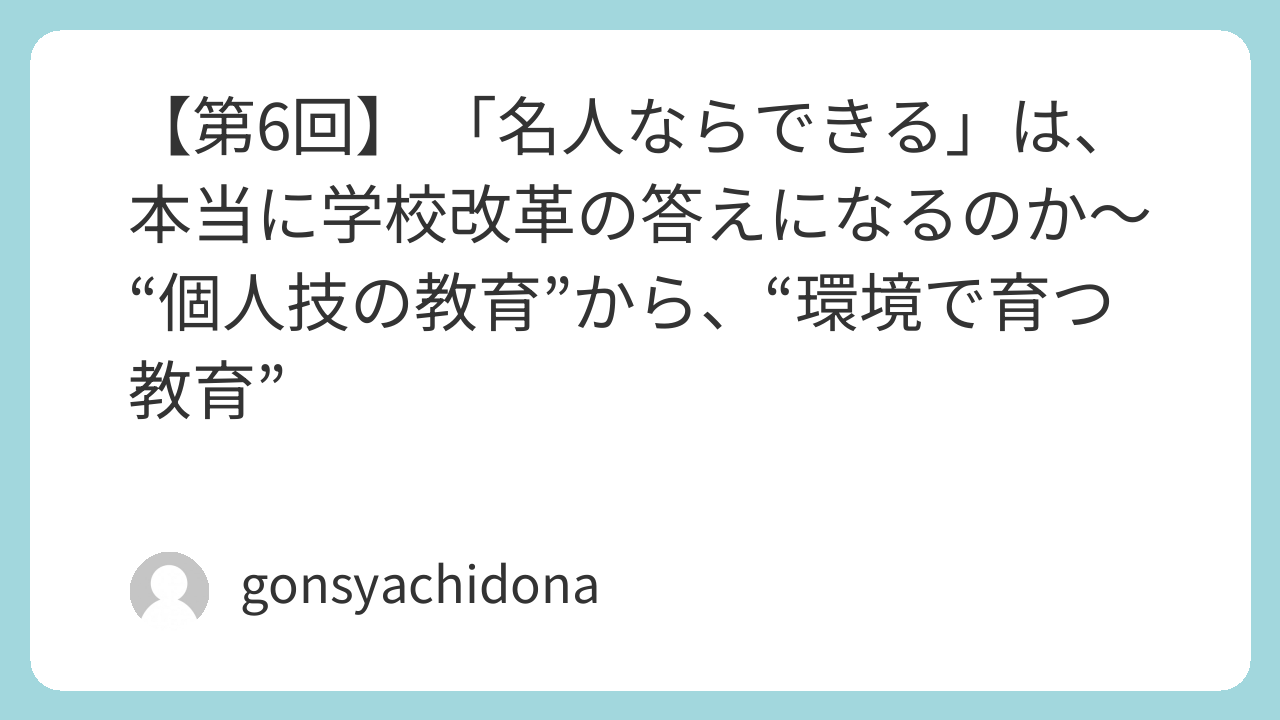 でも、学校という組織が本当に目指すべきなのは、一部のスーパーティーチャーが成立させる教育ではなく、普通の教師が、普通の日常の中で、子どもたちを少しずつ育てられる教育